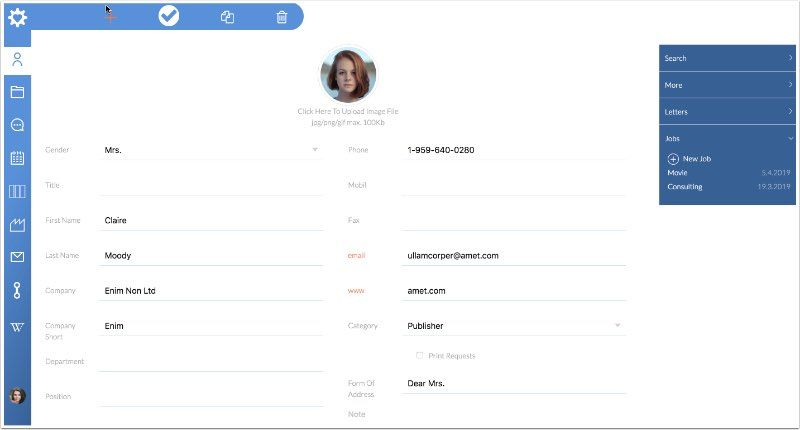 For all contacts, you can immediately see the activities associated with them: Proposals and orders to customers, enquiries to manufacturers and freelancers, letters and other contacts.